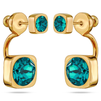 Изготовлено из ювелирного сплава на основе латуни с гальваническим покрытием золотом. Изделие украшают кристаллы SW диаметром 4 и 8мм изумрудного цвета. Длина серьги 2.3см. Застежка-гвоздики.