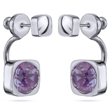 Изготовлено из ювелирного сплава на основе латуни с гальваническим покрытием родием. Изделие украшают кристаллы SW диаметром 8мм пурпурного цвета. Длина серьги 2.3см. Застежка-гвоздики.
