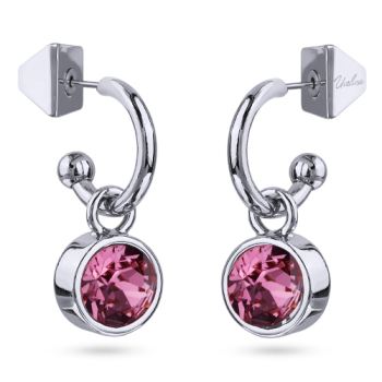 Изготовлено из ювелирного сплава на основе латуни с гальваническим покрытием родием. Изделие украшают кристаллы SW розового цвета диаметром 8мм. Длина 2.7см. Застежка-гвоздики.