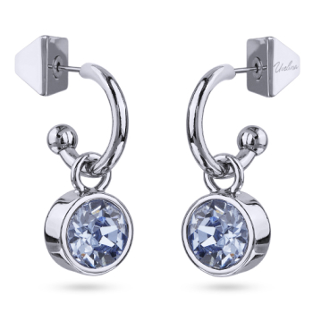 Изготовлено из ювелирного сплава на основе латуни с гальваническим покрытием родием. Изделие украшают кристаллы SW цвета светлый сапфир диаметром 8мм. Длина 2.7см. Застежка-гвоздики.