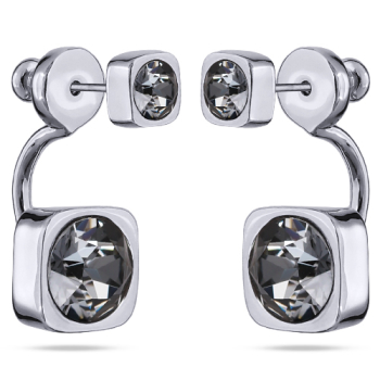 Изготовлено из ювелирного сплава на основе латуни с гальваническим покрытием родием. Изделие украшают кристаллы SW диаметром 4 и 7мм темно-серого цвета. Длина серьги 2.3см. Застежка-гвоздики.