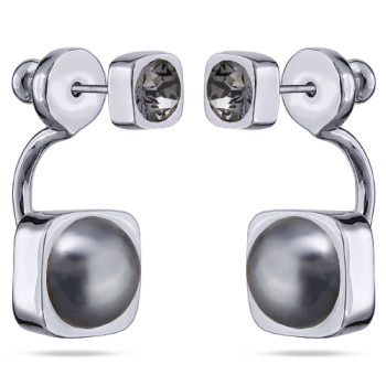 Изготовлено из ювелирного сплава на основе латуни с гальваническим покрытием родием. Изделие украшают кристаллы SW диаметром 4мм и жемчуг Майорка диаметром 8мм темно-серого цвета. Длина серьги 2.3см. Застежка-гвоздики.