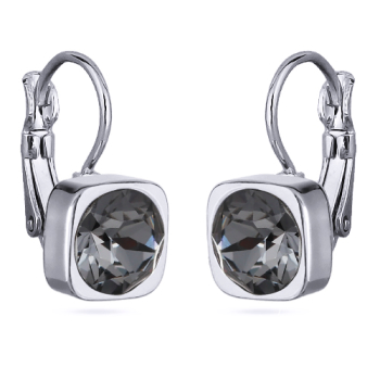 Изготовлено из ювелирного сплава на основе латуни с гальваническим покрытием родием. Изделие украшают кристаллы SW темно-серого цвета диаметром 8мм. Длина серьги 1, 8см.
