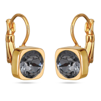 Изготовлено из ювелирного сплава на основе латуни с гальваническим покрытием золотом. Изделие украшают кристаллы SW темно-серого цвета диаметром 8мм. Длина серьги 1, 8см.