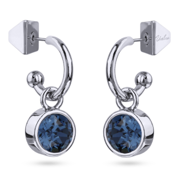 Изготовлено из ювелирного сплава на основе латуни с гальваническим покрытием родием. Изделие украшают кристаллы SW темно-синего цвета диаметром 8мм. Длина 2.7см. Застежка-гвоздики.