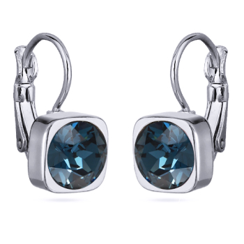 Изготовлено из ювелирного сплава на основе латуни с гальваническим покрытием родием. Изделие украшают кристаллы SW темно-синего цвета диаметром 8мм. Длина серьги 1, 8см.