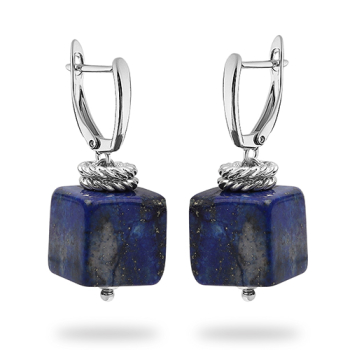 Изготовлено из ювелирного сплава на основе латуни с гальваническим покрытием родием. Изделие украшают натуральный агат и лазурит размером 13х13мм
