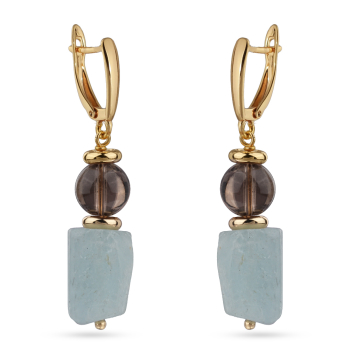 Изготовлено из ювелирного сплава на основе латуни с гальваническим покрытием золотом. Изделие украшают аквамарин и раухтопаз диаметром 8мм. Длина 4.2см. Английская застежка.