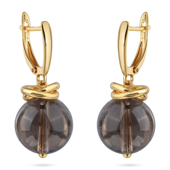 Серьги Терра (фантомный раухтопаз 12мм; покрытие золото), Есть комплект