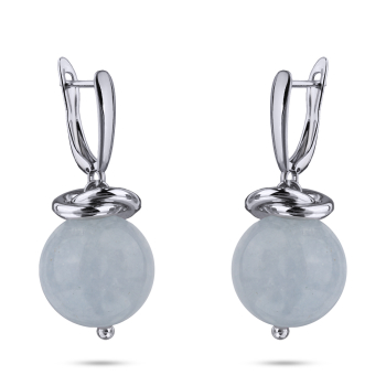 Изготовлено из ювелирного сплава на основе латуни с гальваническим покрытием родием. Изделие украшает голубой морганит диаметром 12мм. Длина серьги 3см. Английский замок.
