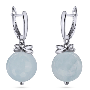 Серьги Терра (морганит голубой 12мм; покрытие родий), Есть комплект
