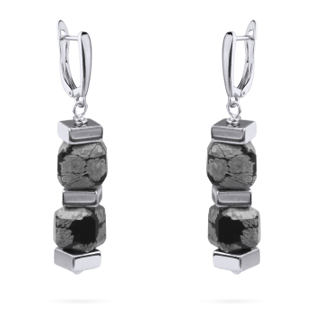 Изготовлено из ювелирного сплава на основе латуни с гальваническим покрытием родием. Изделие украшают обсидиан