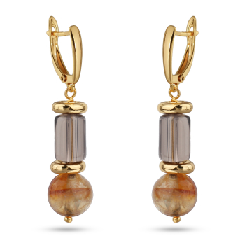 Изготовлено из ювелирного сплава на основе латуни с гальваническим покрытием золотом. Изделие украшают раухтопаз и цитрин диаметром 10мм. Длина 4.6см. Английская застежка.