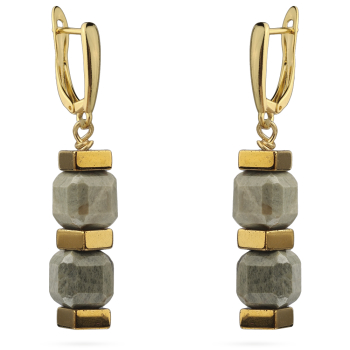 Изготовлено из ювелирного сплава на основе латуни с гальваническим покрытием родием. Изделие украшает натуральная яшма. Размер серьги 4, 5х0, 8см.