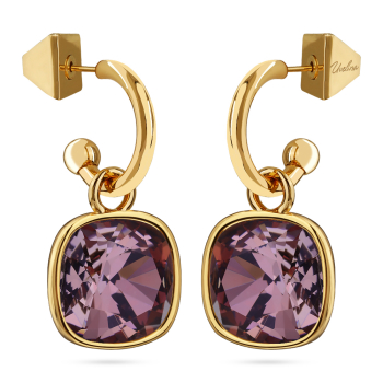 Изготовлено из ювелирного сплава на основе латуни с гальваническим покрытием золотом. Изделие украшают кристаллы SW цвета бургунди диаметром 12мм. Длина серьги 3см. Застежка-хупы.