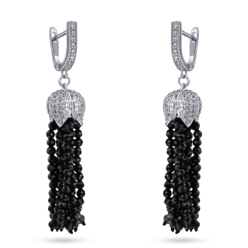 Изготовлено из ювелирного сплава на основе латуни с гальваническим покрытием родием. Изделие украшают фианиты белого цвета и черная шпинель. Длина 6см. Английская застежка.