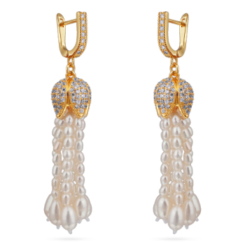 Серьги Тюльпан (жемчуг белый 3-4мм; покрытие золото), Есть комплект
