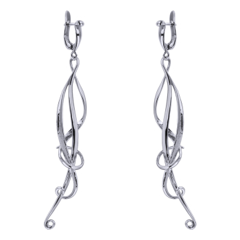 Изготовлено из ювелирного сплава на основе латуни с гальваническим покрытием родием. Размер серьги 8.5х1.5см. Английская застежка.