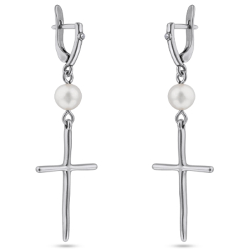 Изготовлено из ювелирного сплава на основе латуни с гальваническим покрытием античным серебром. Изделие украшает натуральный жемчуг белого цвета диаметром 8мм. Размер серьги 6, 3х2см. Английская застежка.