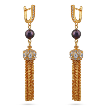 Изготовлено из ювелирного сплава на основе латуни с гальваническим покрытием золотом. Изделие украшают бензиновый жемчуг диаметром 6мм и белый фианит Длина 7, 5см. Английская застежка.