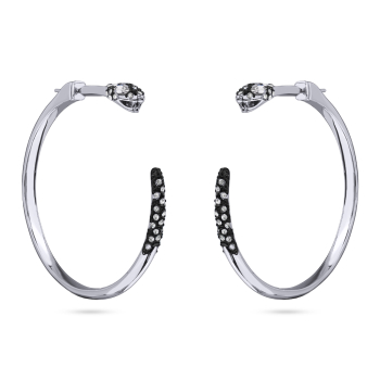 Изготовлено из ювелирного сплава на основе латуни с гальваническим покрытием родием и черным родием. Изделие украшают белые кристаллы SW. Диаметр украшения 5см. Застежка-гвоздики.