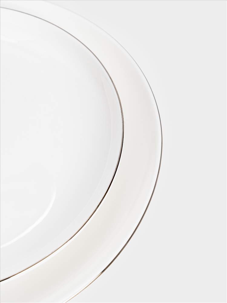 Штрихкод: 4607947163780 Сезон: ВСЕСЕЗОННЫЙ Коллекция: БАЗОВАЯ Страна бренда: Китай Сервиз обеденный, 6 перс, 21 пр, фарфор F, белый, с серебристым кантом, Arctic. Материал: фарфор Fine Bone China. Можно использовать в СВЧ. Мыть тёплой водой с применением жидких моющих средств. Не рекомендуется мыть в посудомоечной машине. Комментарии к товару