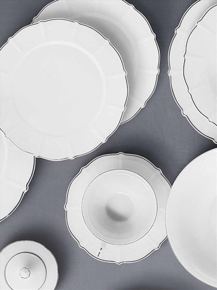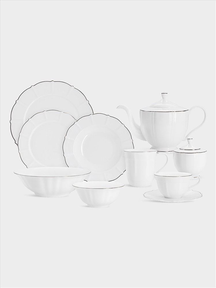 Сервиз обеденный, 6 перс, 21 пр, фарфор F, белый, с серебристым кантом, Lotus silver. Материал: фарфор Fine Bone China. Мыть тёплой водой с применением жидких моющих средств. Не использовать в СВЧ и в посудомоечной машине.