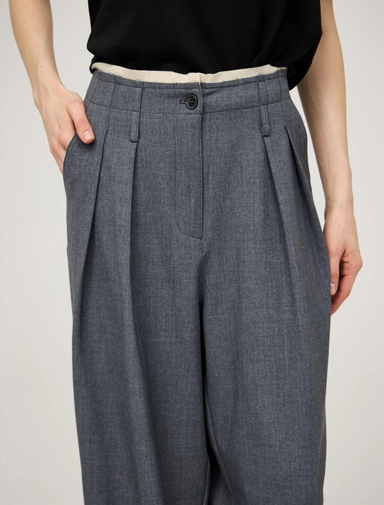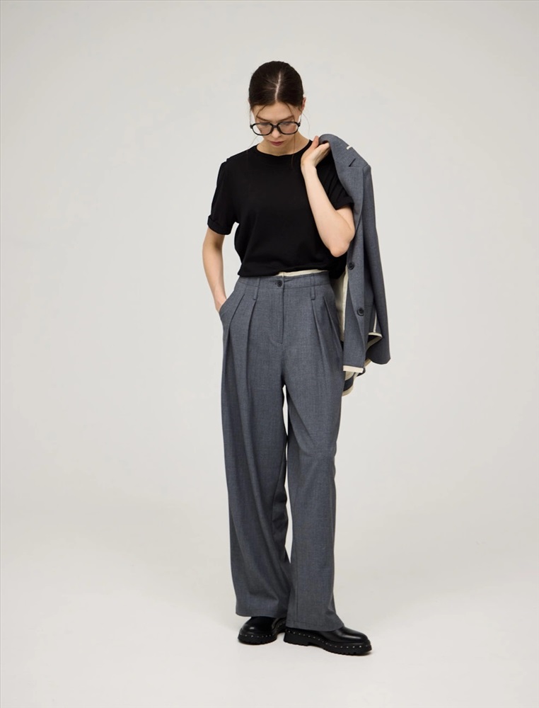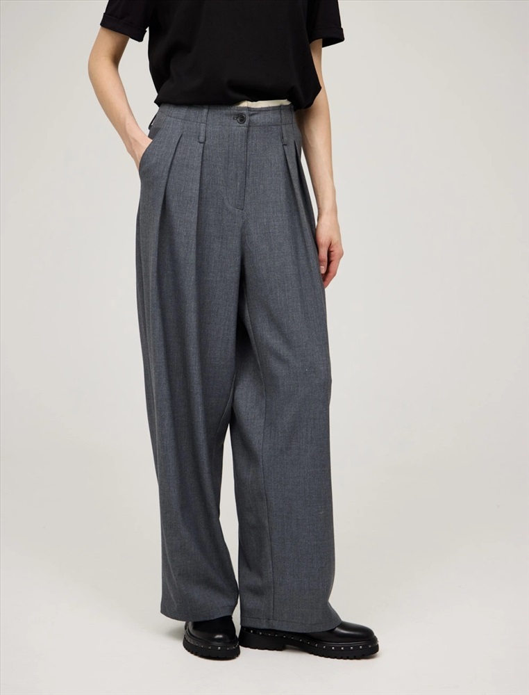 Видео: https-//hassfashion.ru/upload/iblock/68d/he5sqoz2ku7swk1w9evhsmssxpeoxy4u.mp4 весна-лето 65% Хлопок, 25% Район, 5% Кашемир, 5% Спандекс Брюки широкие прямого силуэта с посадкой на талии. Пояс цельнокроеный с шлевками и эффектом необработанного края. По передней части изделия — гульфик, застежка на пуговицу и защипы. По боковым швам изделия два кармана, усиленных отделочной строчкой. В составе ткани хлопок, район, кашемир и спандекс. Представлены в сером цвете.