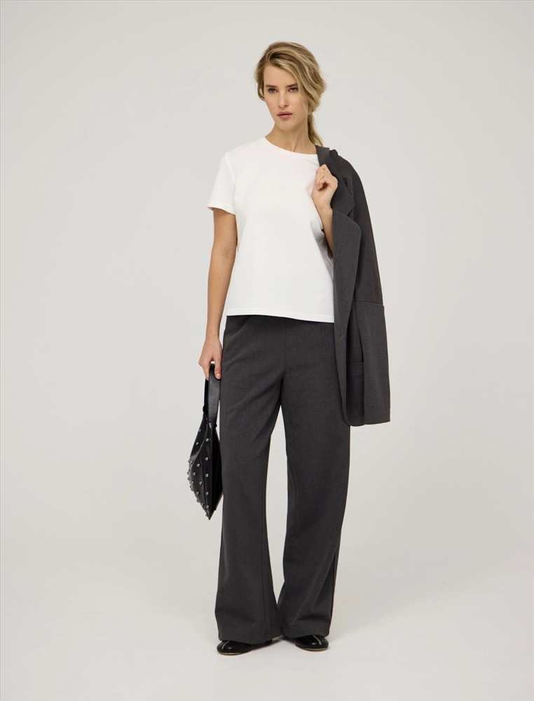Серые широкие брюки с кантом
