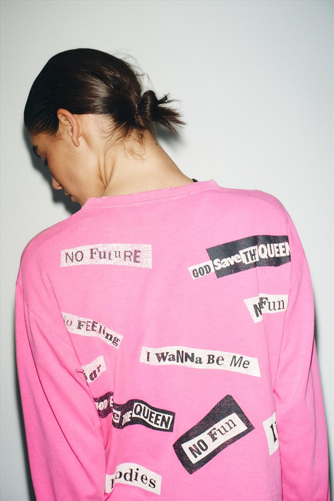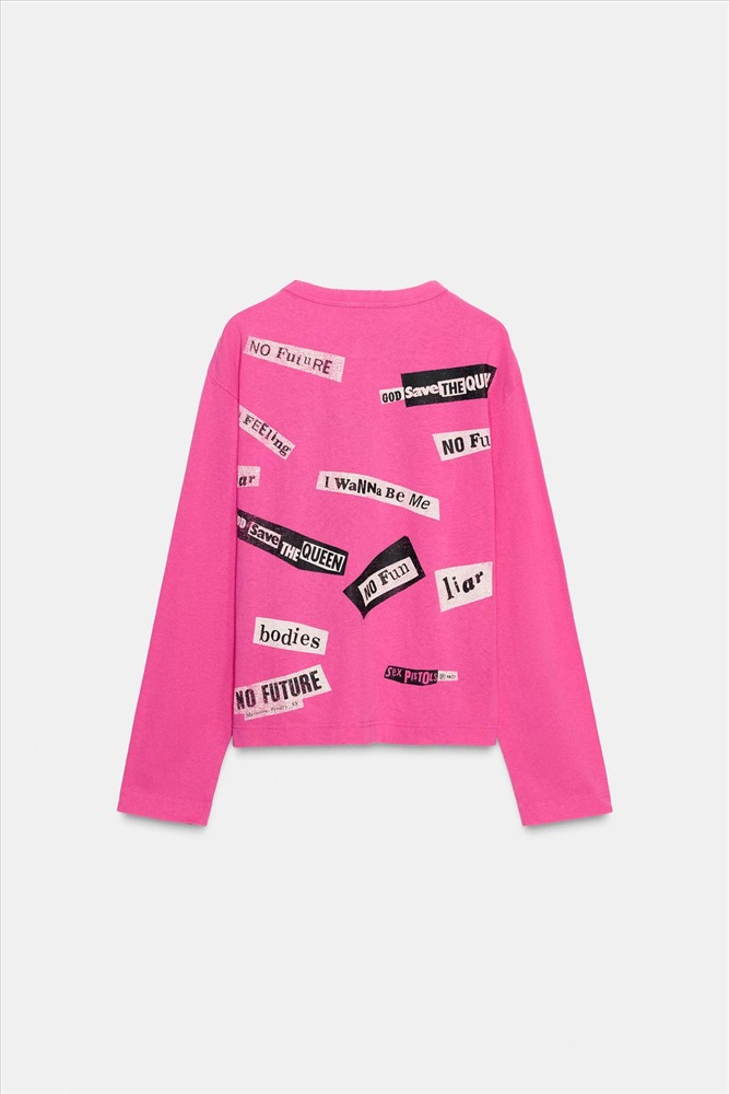 Round neck, long sleeve T-shirt. Featuring a contrast "© 2025 Sex Pistols Residuals, Bravado™" text detail on the front. Straight hem.