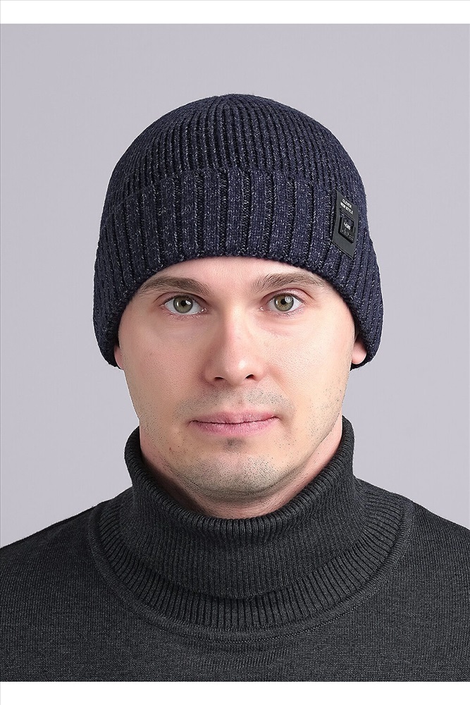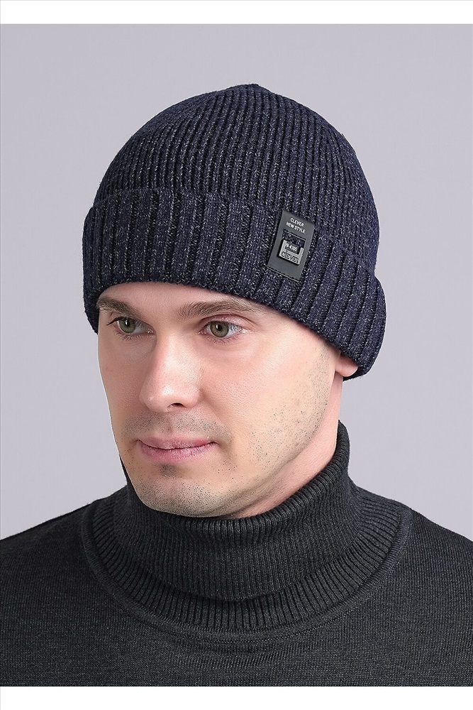 Мужская шапка с отворотом из скрученной пряжи, декорирована стильной нашивкой. Отлично подойдёт для холодной осени, тёплой зимы.
