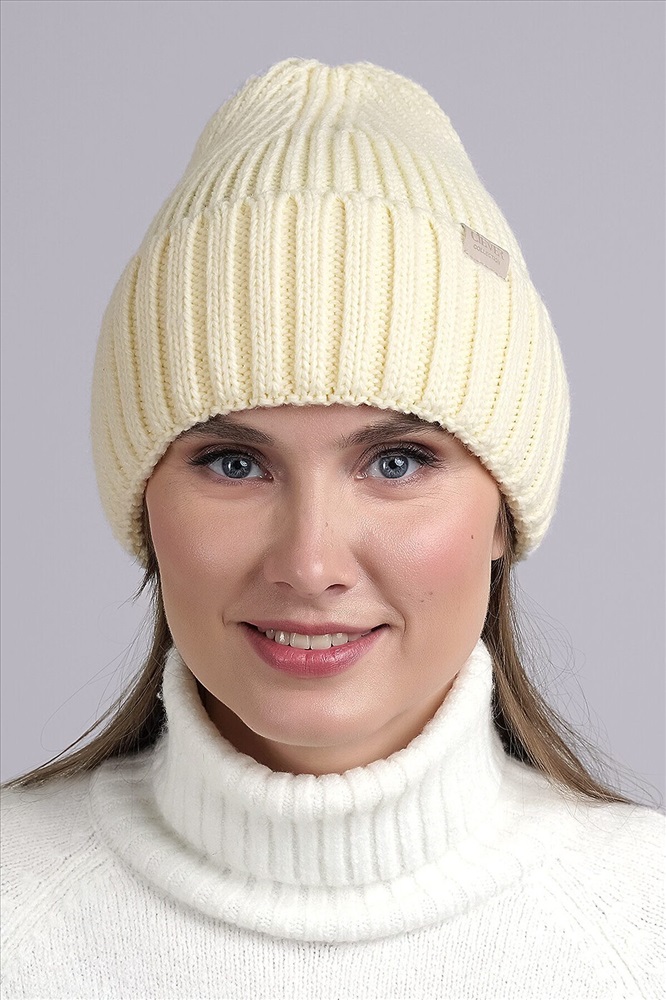 Шапка женская с отворотом, декорирована нашивкой логотип в височной зоне. Подойдёт для холодной осени- тёплой зимы.