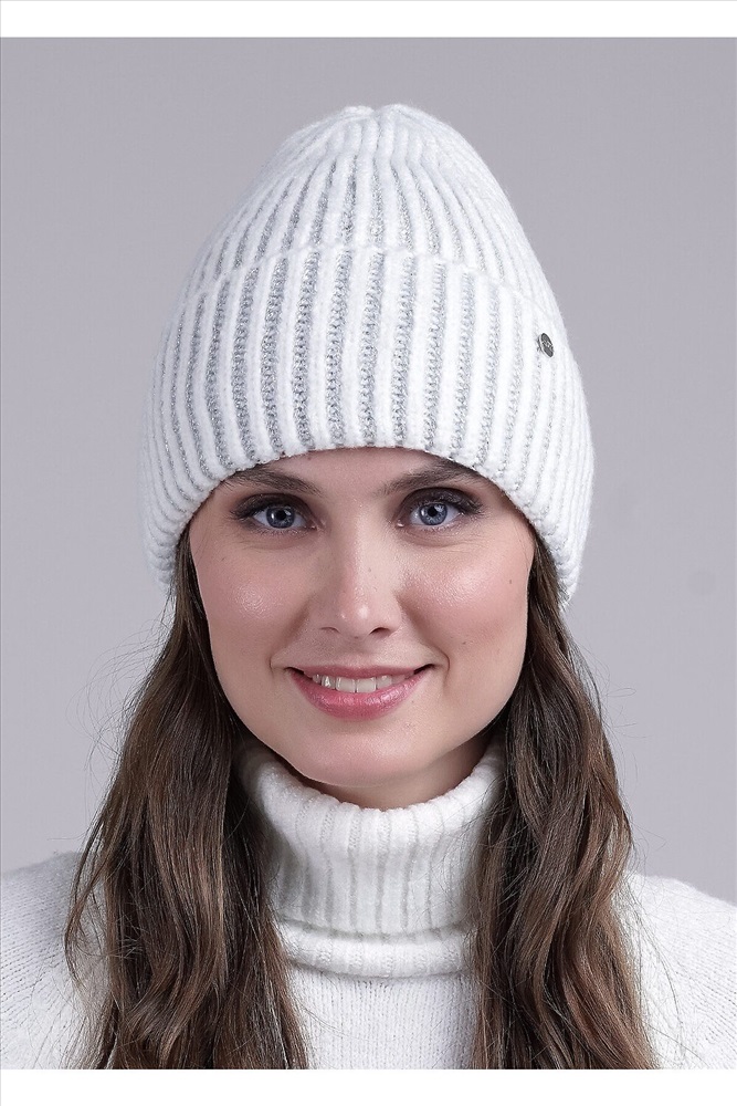 Шапка женская с отворотом и благородным мерцанием за счет люриксной нити. Декорирована имиджевым логотипом. Утепление флисом по всей голове. Идеально подойдёт для холодной зимы.