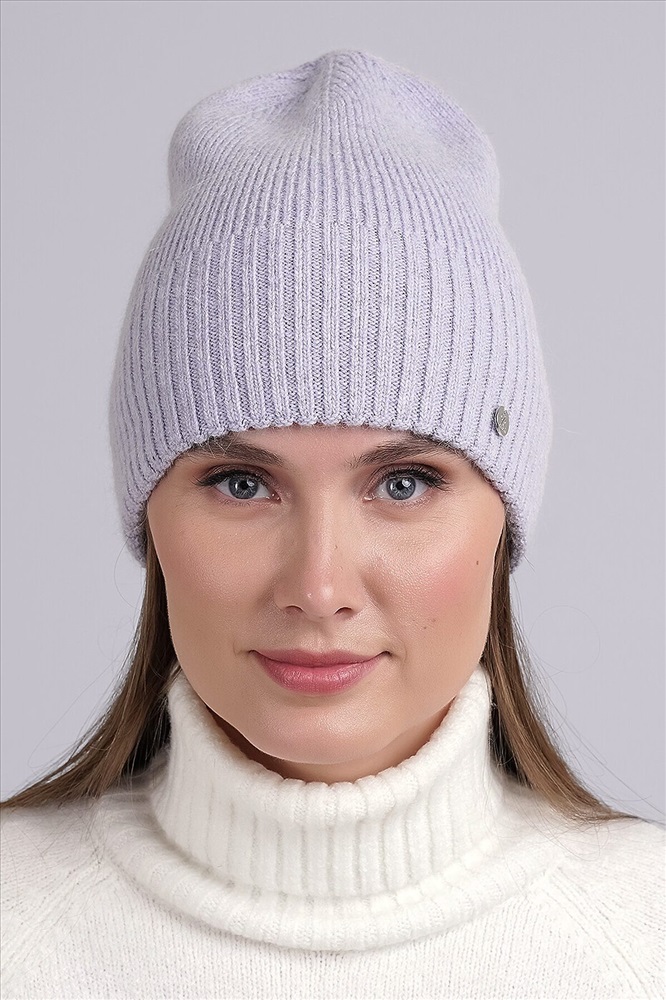 Женская двойная шапка, декорирована нашивкой логотип. Отлично подойдёт для зимы.