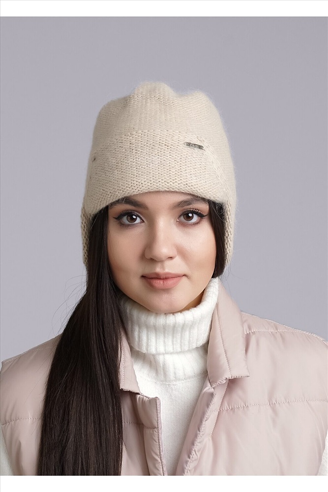Стильная женская ушанка, выполнена из мягкой пряжи- ангоры. Шапка двойная, с объёмным отворотом, декорирована слильной нашивкой логотип. Идеально подойдёт для холодной зимы.