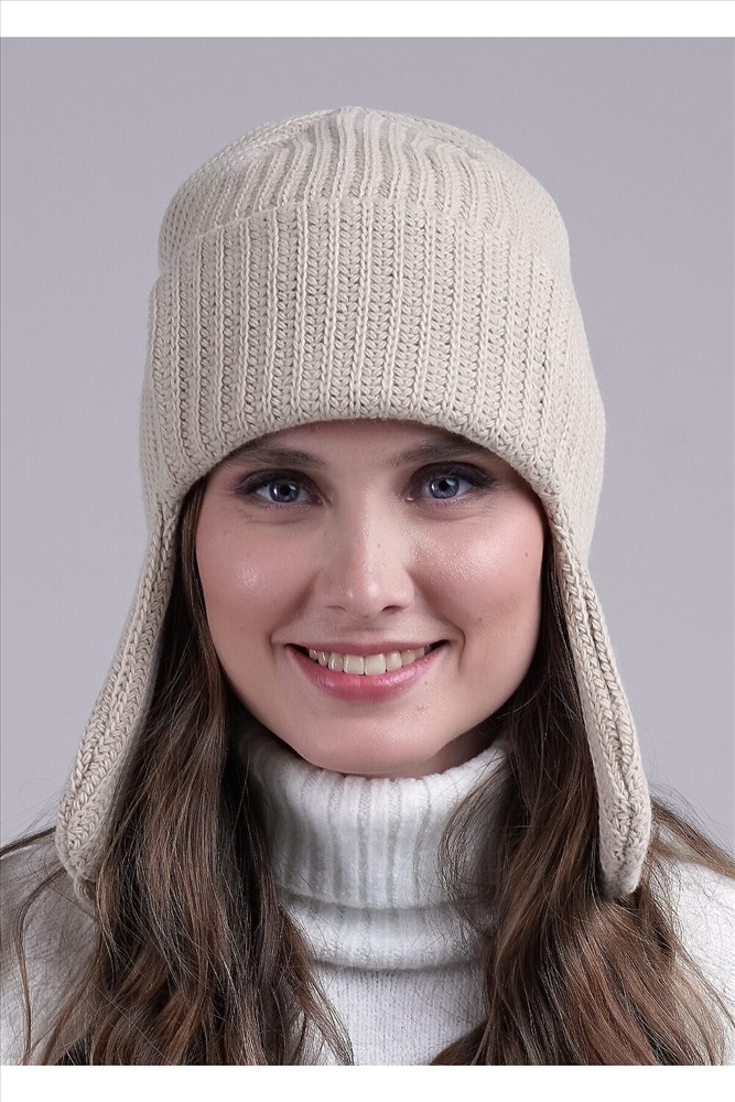 Женская двойная ушанка, застёгивается на пуговицу. Подойдёт для холодной зимы.