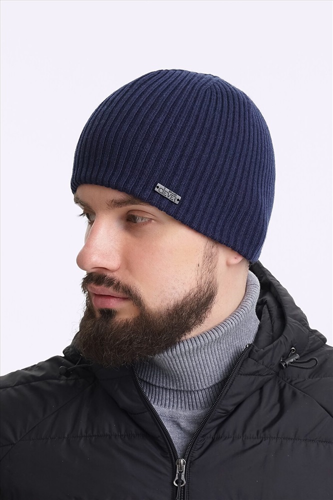 Мужская двойная шапка, декорирована нашивкой логотип. Отлично подойдёт для холодной осени, тёплой зимы.