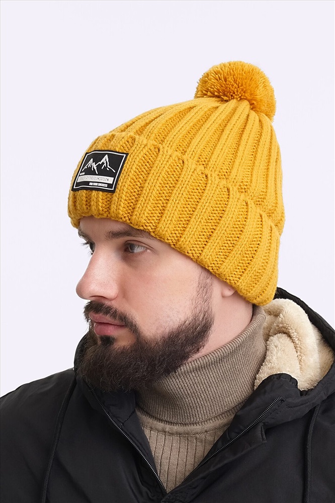Мужская шапка с отворотом, декорирована стильной нашивкой в центральной части. Утепление флисом по всей голове. Отлично подойдёт для холодной зимы.