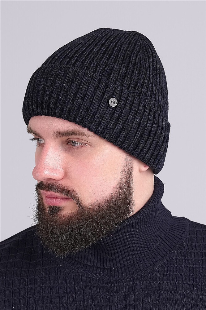 Шапка мужская с отворотом на флисе, декорирована металлической нашивкой с гравировкой