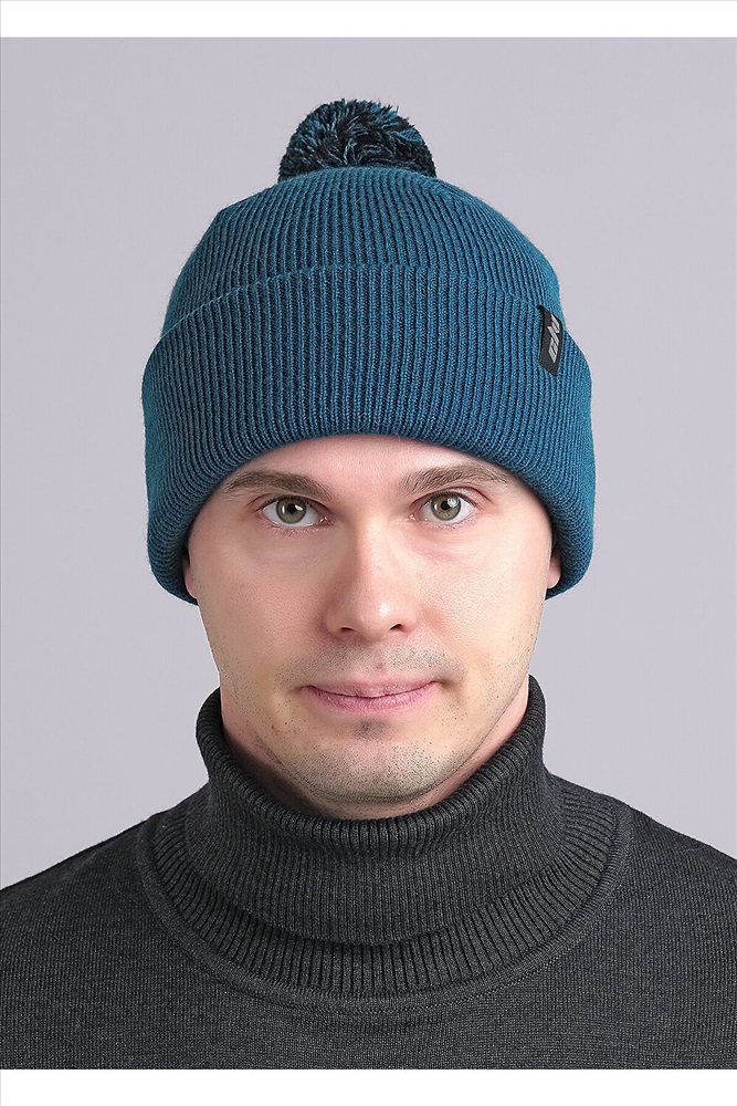 Страна производства: Россия Шапка мужская двойная с отворотом. Декорирована стильной нашивкой логотип и ниточным помпоном.