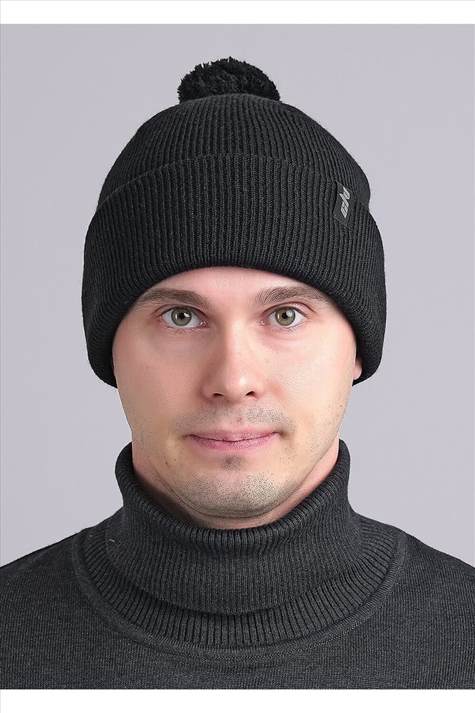Страна производства: Россия Шапка мужская двойная с отворотом. Декорирована стильной нашивкой логотип и ниточным помпоном.
