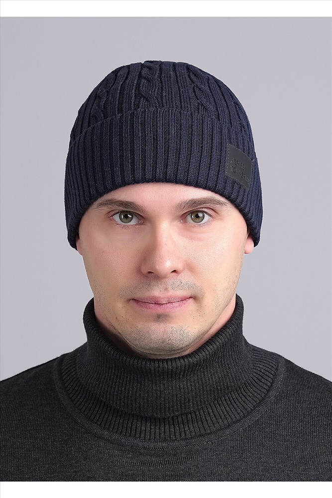 Шапка мужская с отворотом, декорирована стильной нашивкой в височной зоне. Идеально подойдёт для холодной осени- зимы.
