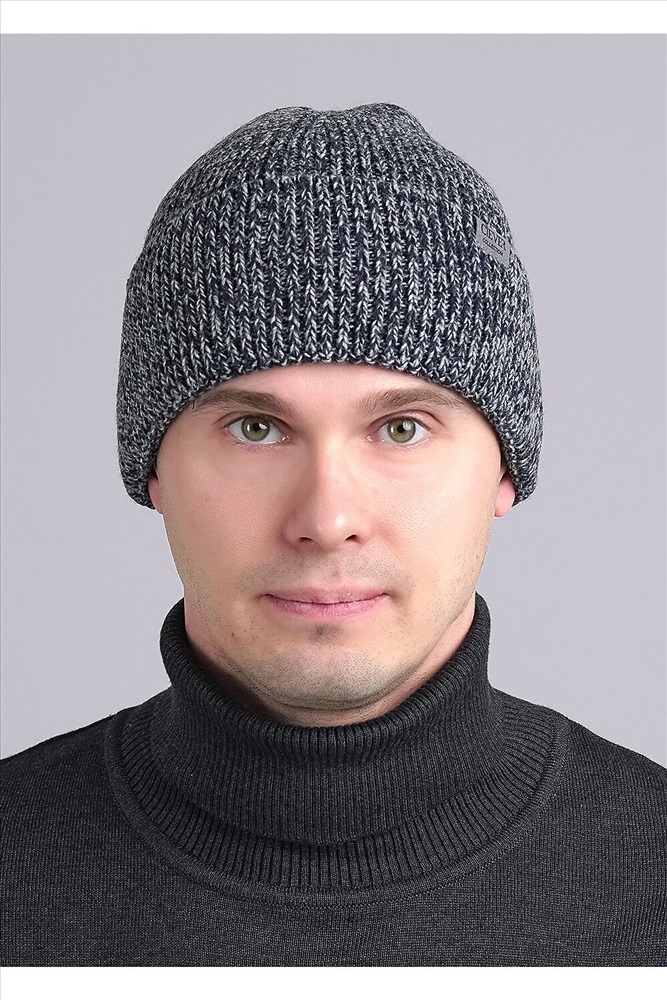 Шапка мужская с отворотом, декорирована стильной нашивкой. Идеальна для холодной осени- тёплой зимы.