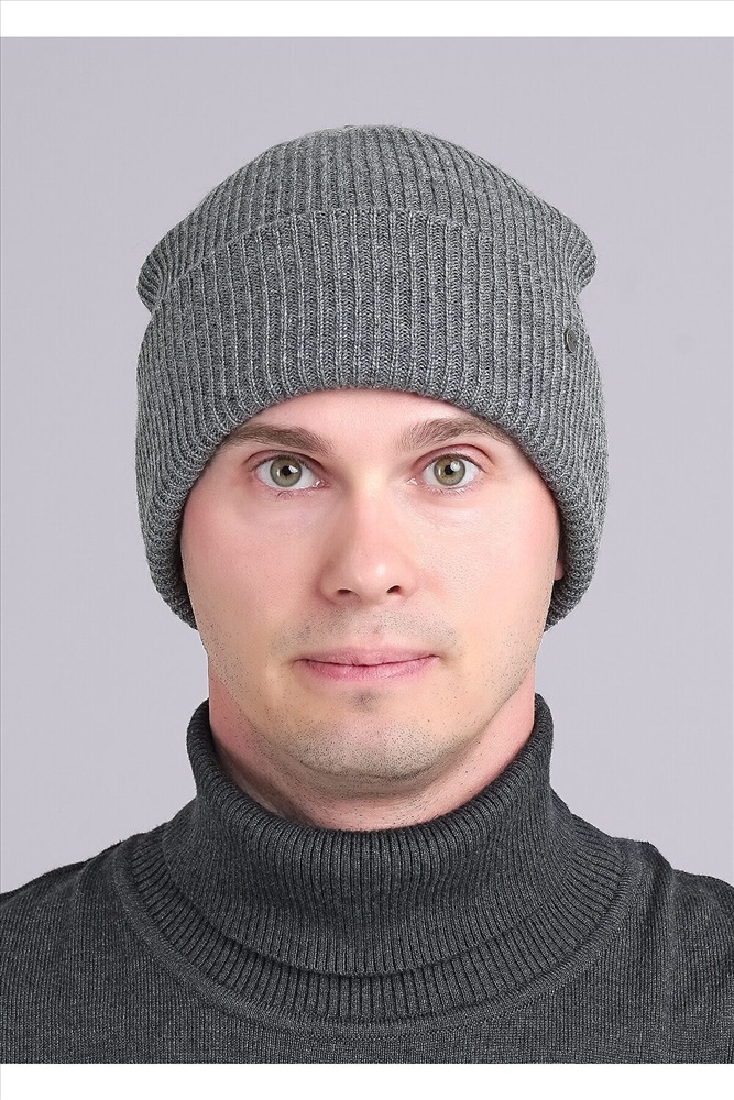 Шапка мужская двойная с отворотом, декорирована стильной нашивкой логотип. Идеально подойдёт для осенне-весеннего периода.