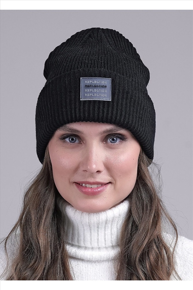 Шапка двойная женская с отворотом, декорирована стильной нашивкой логотип. Отлично подойдёт для зимы.