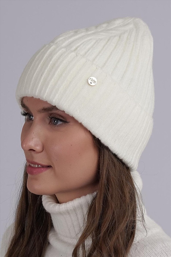 Шапка женская с отворотом, декорирована стильной имиджевой нашивкой. Утепление флисом по всей голове. Отлично подойдёт для холодной зимы.