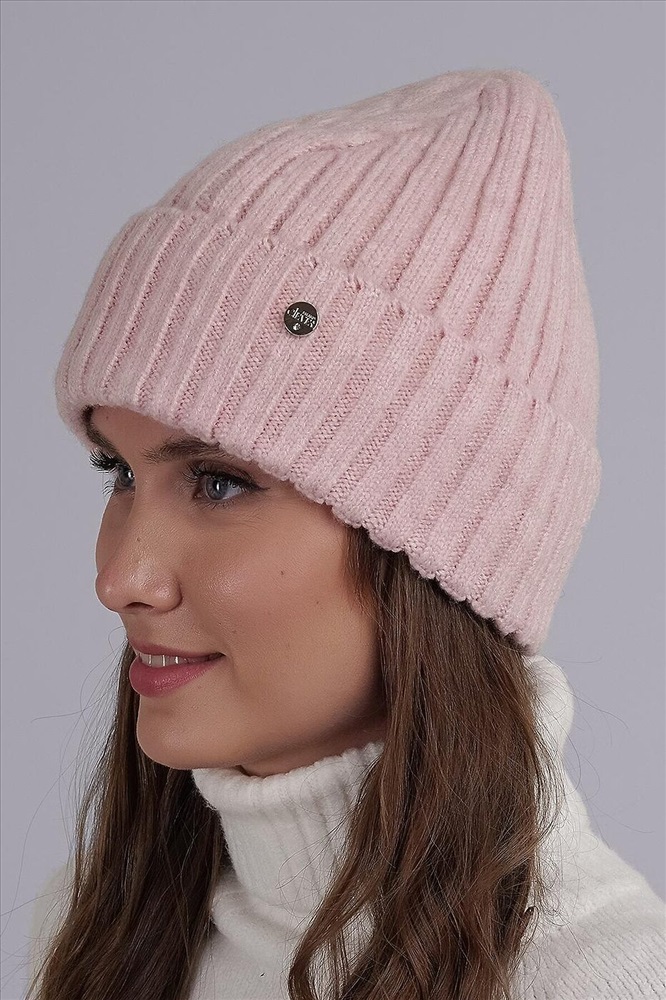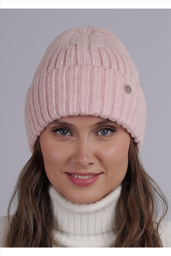 Шапка женская с отворотом, декорирована стильной имиджевой нашивкой. Утепление флисом по всей голове. Отлично подойдёт для холодной зимы.
