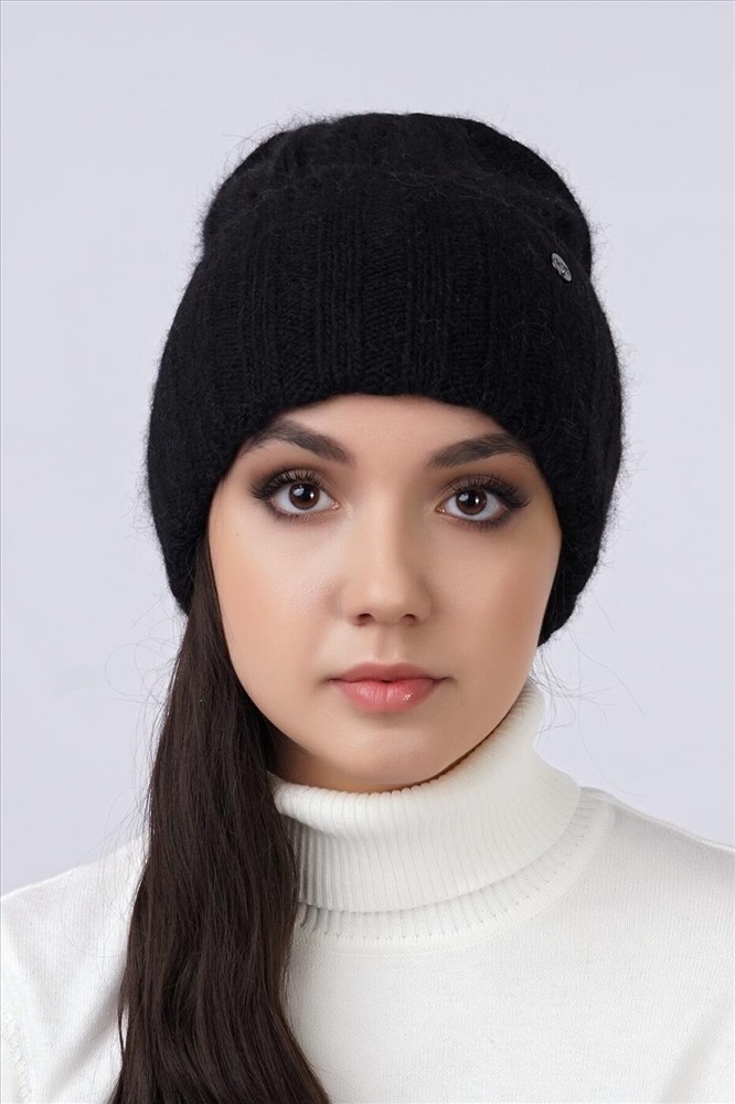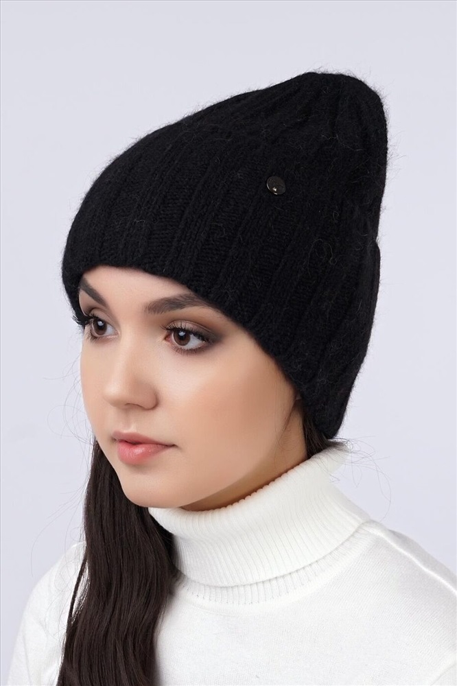 Женская шапка с отворотом, связаная ластичным переплетением. Дополнительное утепление - флис