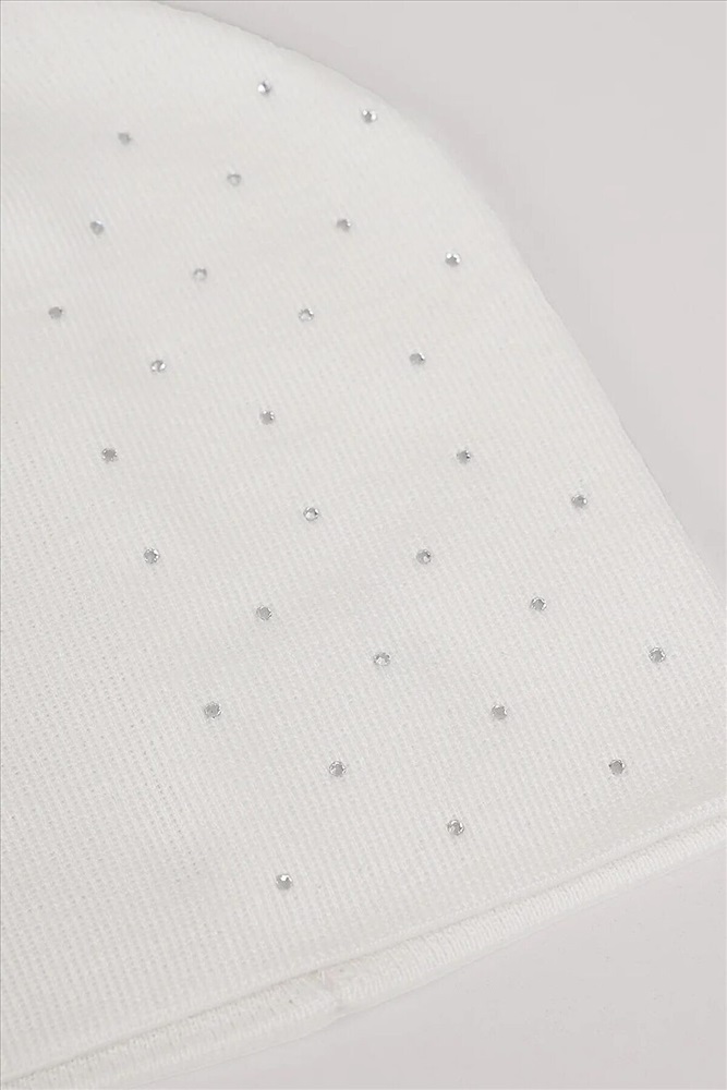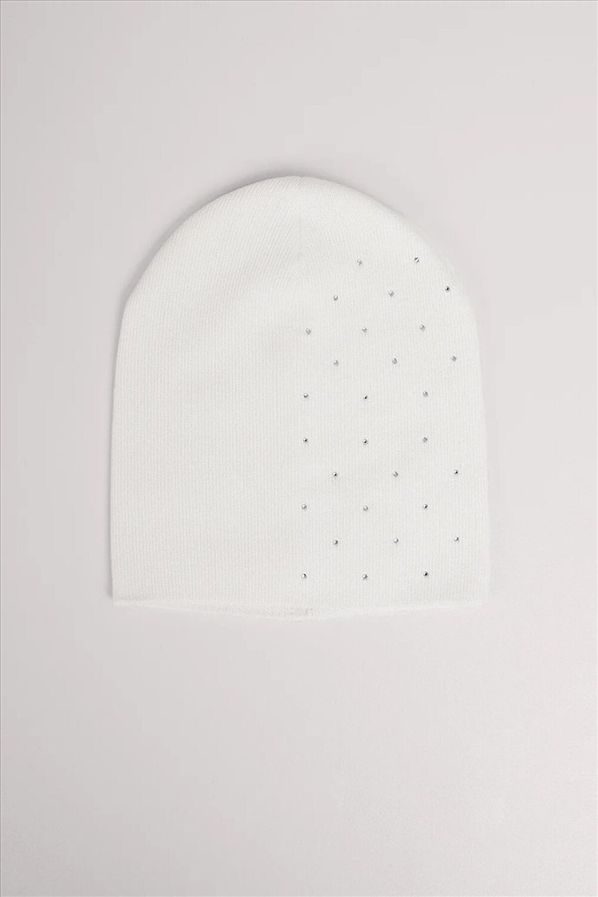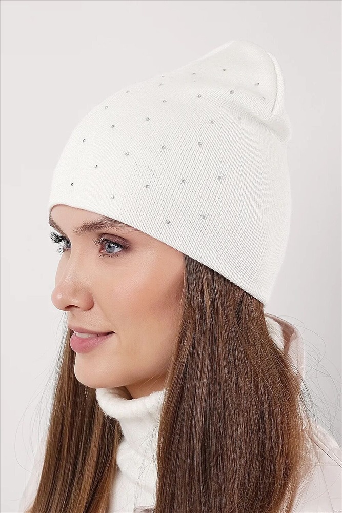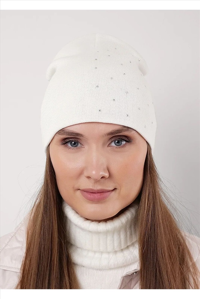 Шапка женская двойная без отворота, декорирована стразами. Идеальный вариант на осень, весну.