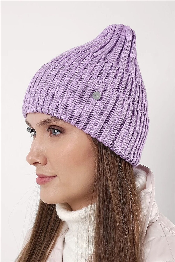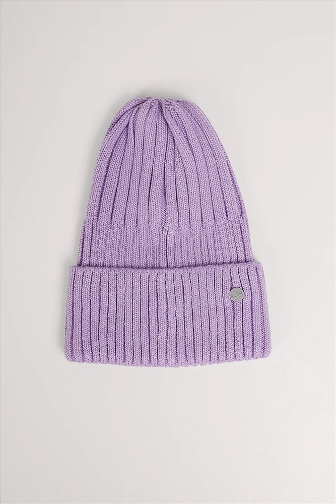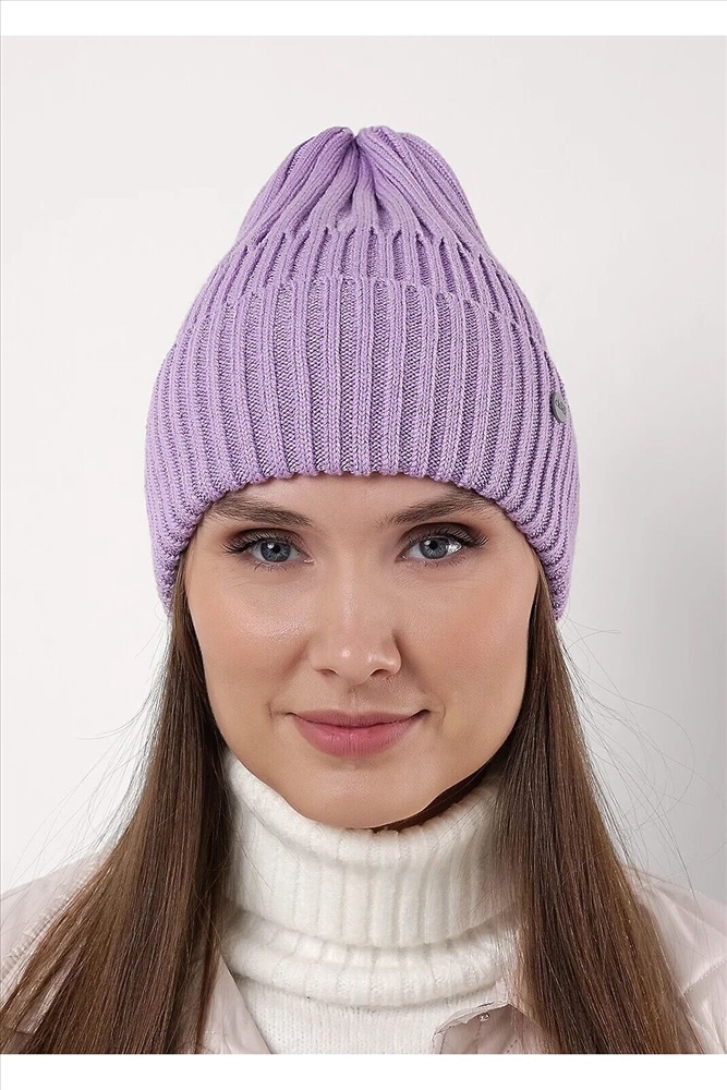 Женская шапка однослойная с отворотом, без подклада, декорирована стильной нашивкой. Изготовленная из хлопка. Идеальный вариант на осень, весну.